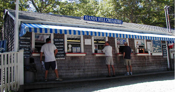 Go for the ice cream and stay for the clam cakes/balls/fritters. Delicious and right in town. Order at the window and dine outdoors at one of their picnic tables.